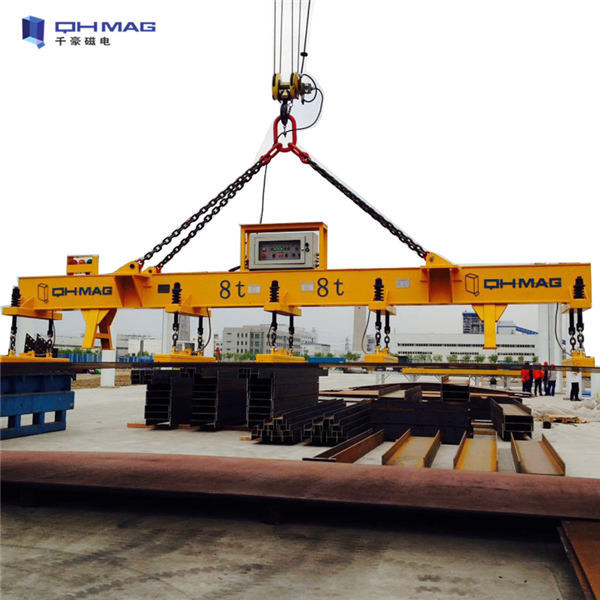 I sollevatori a magnete permanente automatici pricipalmente sono utilizzati in cantieri navali, nelle fabbriche della struttura d'acciaio, in magazzini, in officine, nelle iarde del trasporto ed in altre attrezzature di sollevamento sostenenti per assorbire i materiali o i pezzi da lavorare di conduzione magnetici del tipo di piatto, che possono essere utilizzati in un singolo insieme e possono essere usati congiuntamente alle diversità, con le caratteristiche della struttura leggera, dell'operazione conveniente, di forte forza di tenuta, della sicurezza e dell'affidabilità. È utile migliorare le condizioni di lavoro dell'operazione di movimentazione e migliorare la produttività del lavoro. È stato ampiamente usato come strumenti di sollevamento in fabbriche, in bacini, in magazzini e nelle industrie del trasporto.
